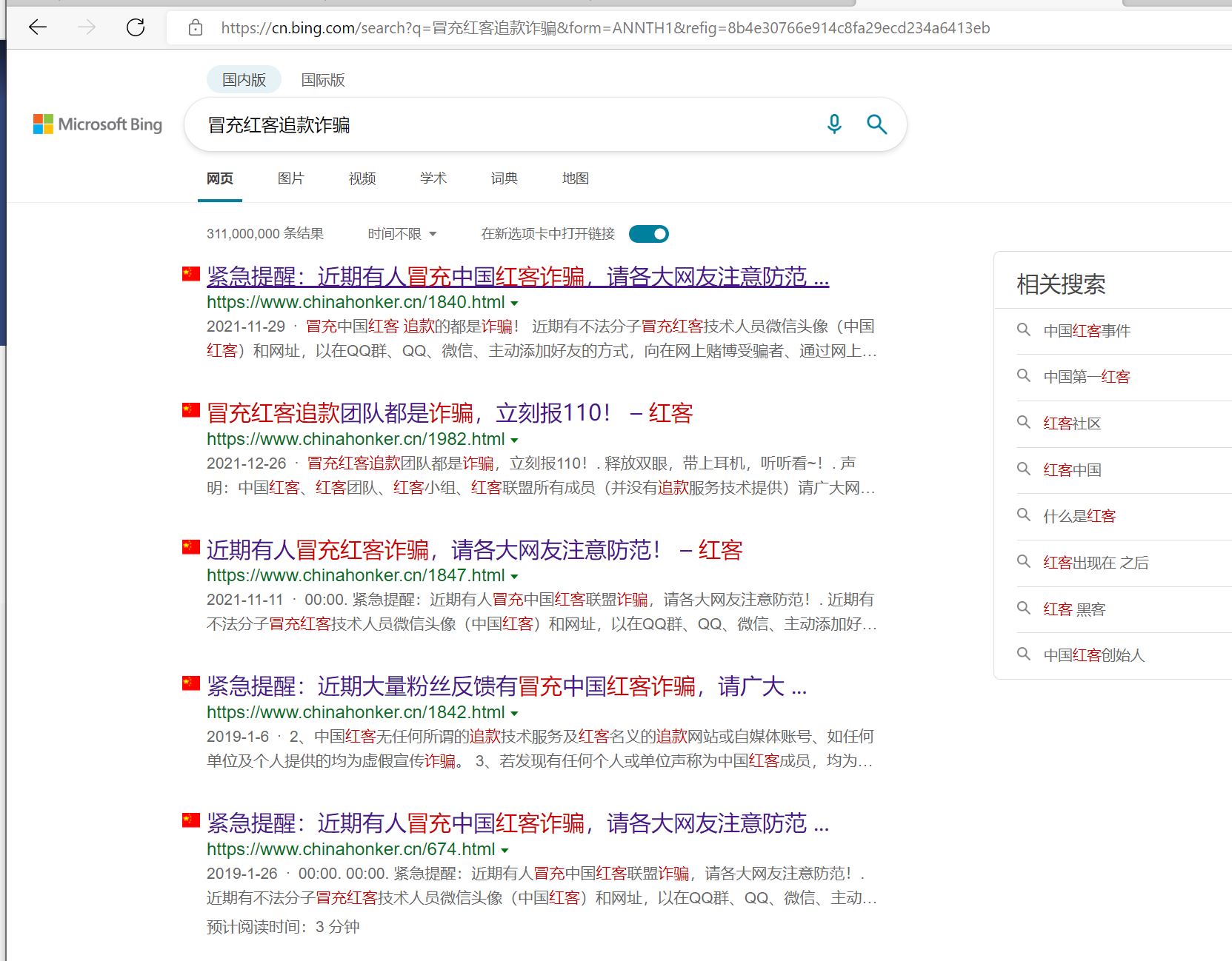 2、红客无任何其它网站或分站、如任何单位及个人提供的均为伪造。