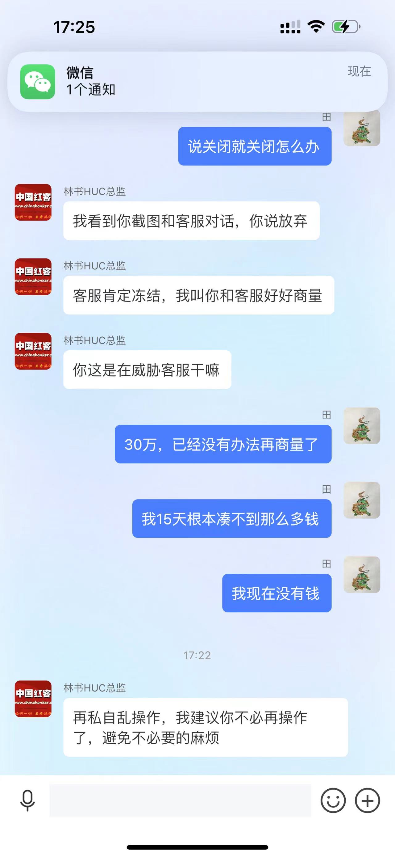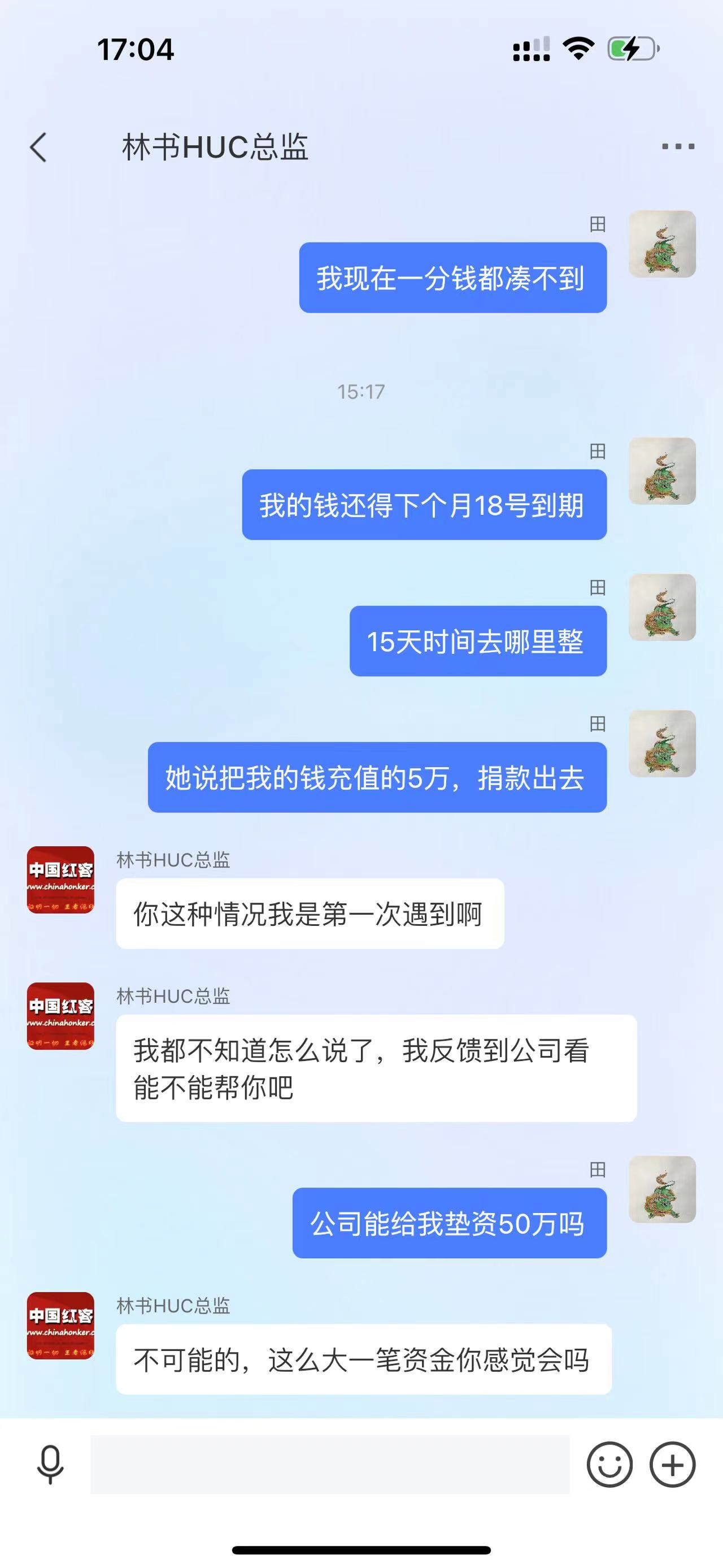 这是2023年5月有25日一早有个叫微信叫:梵音静思 的网友一早发过来消息:我被中国红客联盟骗了5万块钱。我立刻知道了,这被网络上的专业诈骗团伙,打着红客的名义,在网络上实施诈骗。没有所谓的红客追款团队,更没有红客把能你转给别人的钱给你追回来。